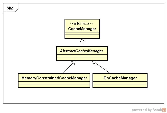 根据Shiro官方的说法,虽然缓存在权限框架中非常重要,但是如果实现一套完整的缓存机制会使得Shiro偏离了核心的功能(认证和授权). 因此Shiro只提供了一个可以支持具体缓存实现(如 : Hazelcast, Ehcache, OSCache, Terracotta, Coherence, GigaSpaces, JBossCache 等)的抽象API接口,这样就允许Shiro用户根据自己的需求灵活地选择具体的CacheManager,当然,其实Shiro也自带了一个本地内存CacheManager(org.apache.shiro.cache.MemoryConstrainedCacheManager),Shiro的缓存组件类图如下所示 :