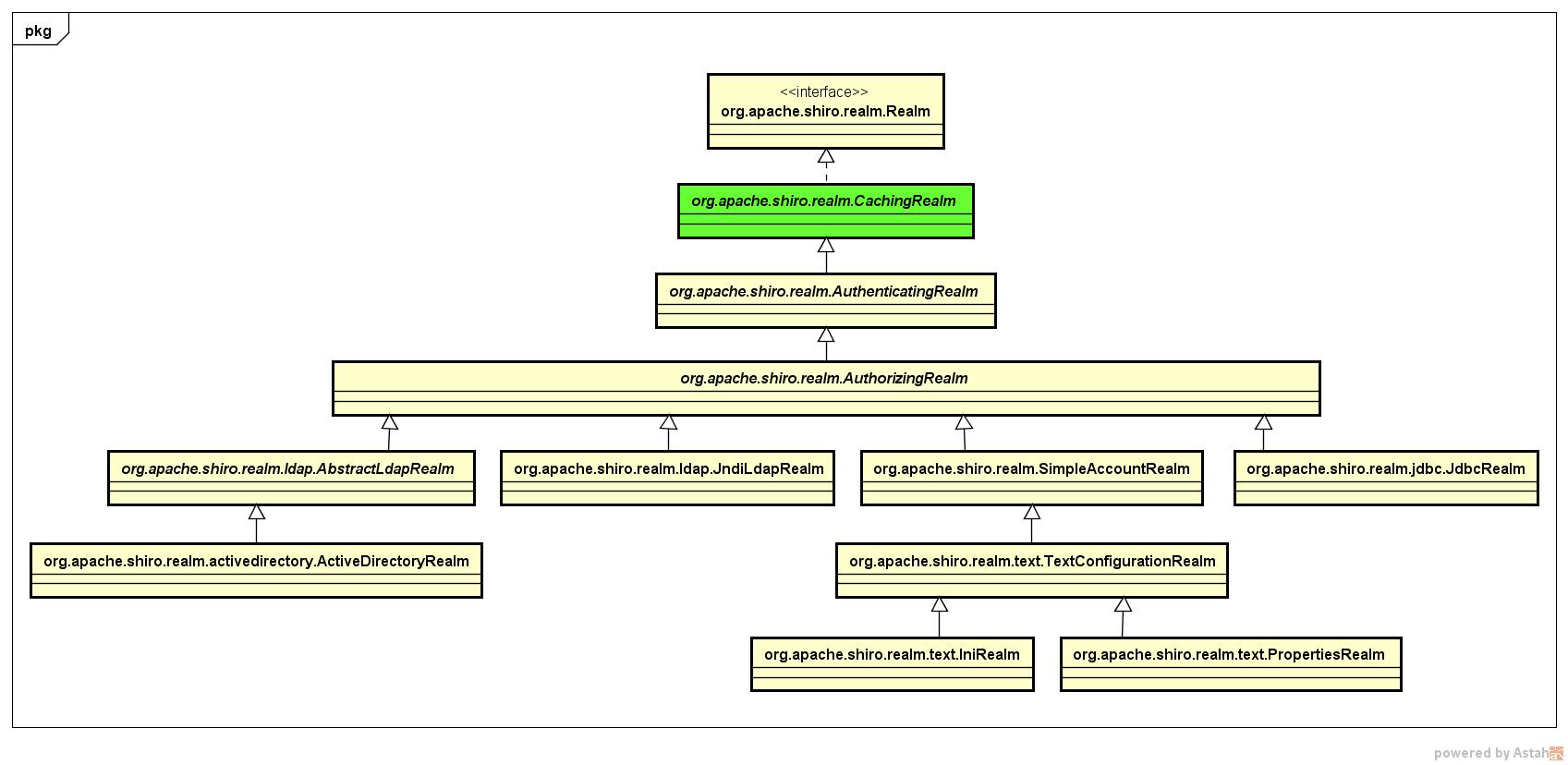 另外,接口org.apache.shiro.realm.Realm定义了权限数据的存储方式,其类图如下所示 :