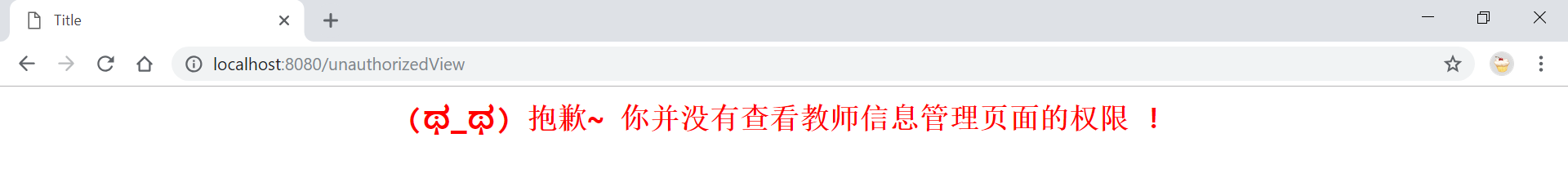 学生( stu )没有访问教师信息管理页面的权限,所以被资源拦截器所拦截继而进入指定的’unauthorized.html’页面面