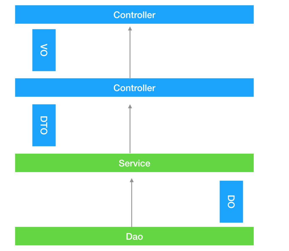 如 UserMapper 里面有 insert(User user) , find(Integer id) ,delete(Integer id) 等方法,则在 Service 中也要有这些方法的实现,假设每个 Mapper 有5个方法,则 Service 也需要有5个方法的实现. 如果有10个实体类, Mapper 可以省略( 可由工具生成 ),但是 Service 需要有这50个方法的实现. 既而后期会导致代码臃肿难以维护,且项目难以扩展哟~ 一般 Java 项目的分层结构图如下所示,详情请参考学习笔记 : Java项目开发中PO,BO,VO,DTO,POJO,DAO的概念及其作用