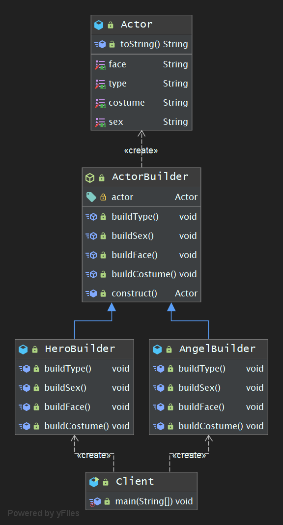 }ActorBuilder抽象类 : 游戏角色建造者, 充当抽象建造者(省略Director并简化construct方法)