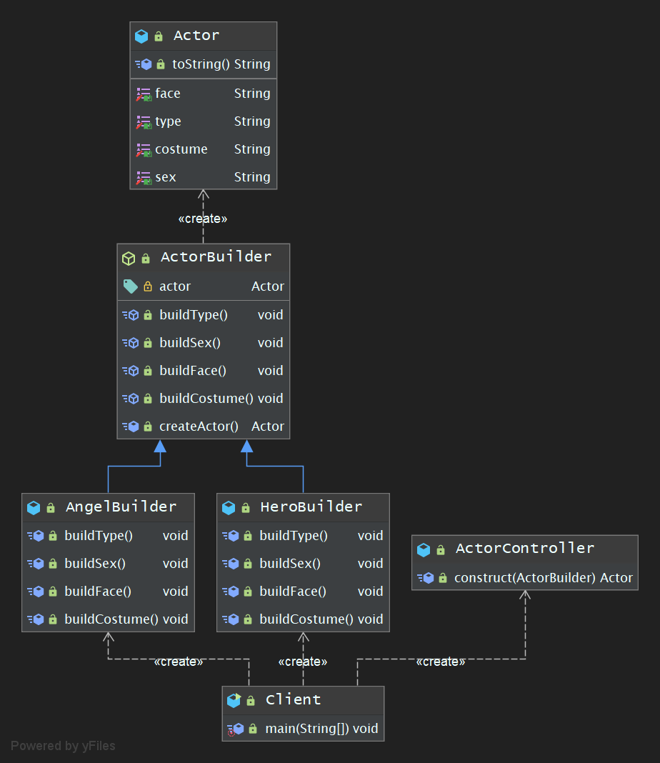 }ActorBuilder抽象类 : 游戏角色建造者, 充当抽象建造者(省略Director并简化construct方法)