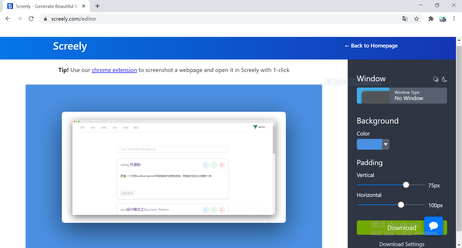最近学习前后端分离开发模式,于是使用 vue 及 springboot 写了一个简洁的博客系统。为了在 README.md 中更好地展示该项目的截图,我在知乎上找到了两款比较好用的截图美化工具,美化后的效果如下 :