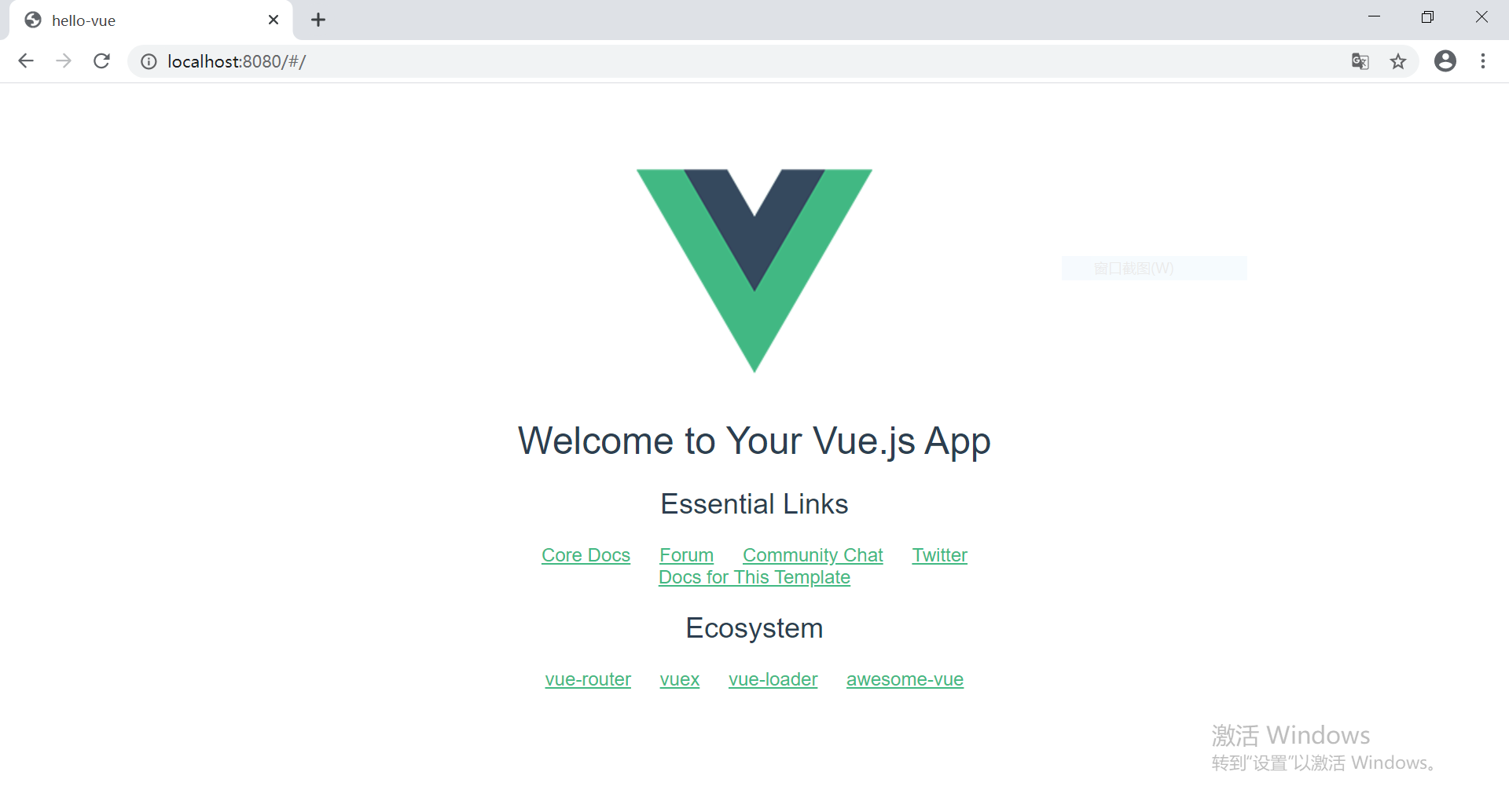 项目默认会在 8080 端口启动,如果端口有占用,会自动调整端口. 打开浏览器输入 : http://localhost:8080 就会看到构建的 vue 项目主页,如下图所示