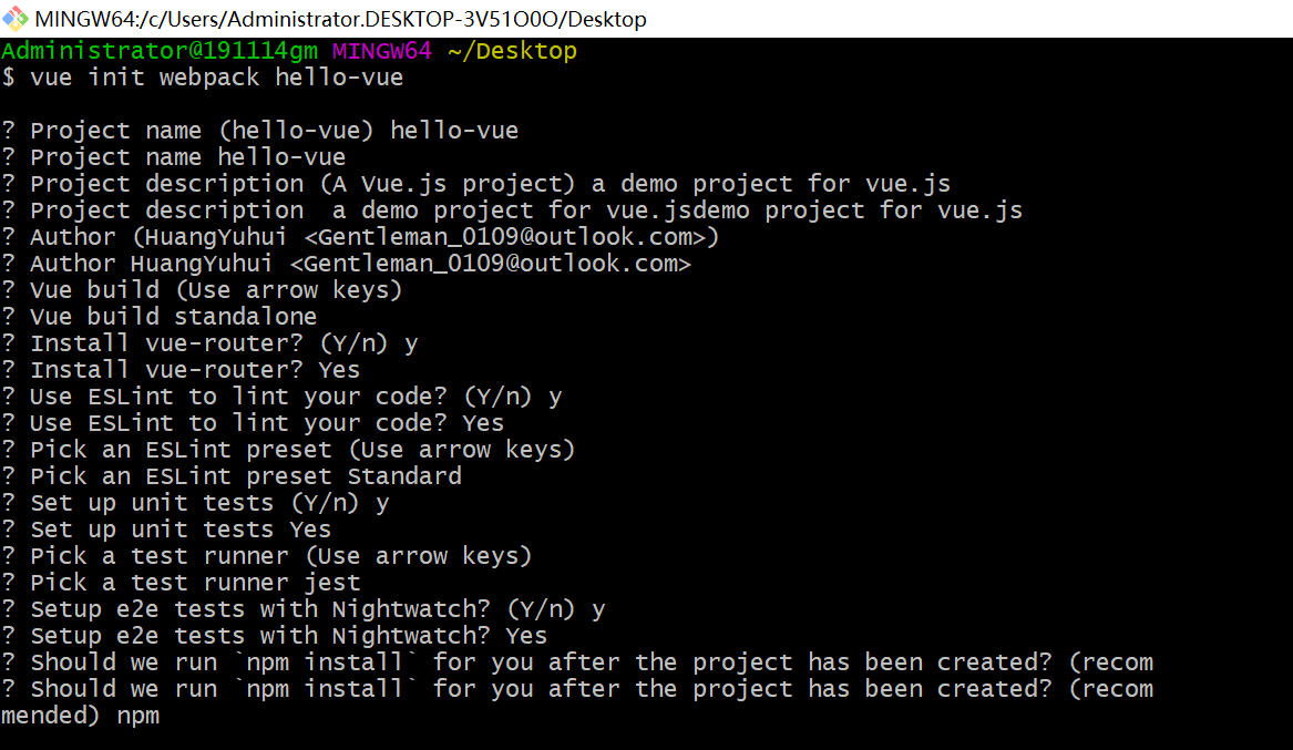 - 初始化的过程中,会有一个交互式的选项让你选择项目的一些配置,根据项目需求选择即可.
